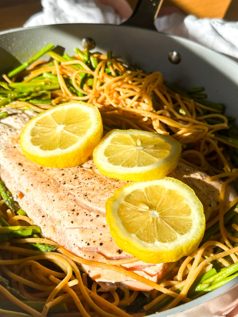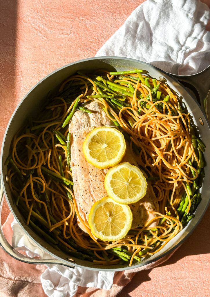 Lemony One Pan Pasta with Salmon & Asparagus (no cream!)