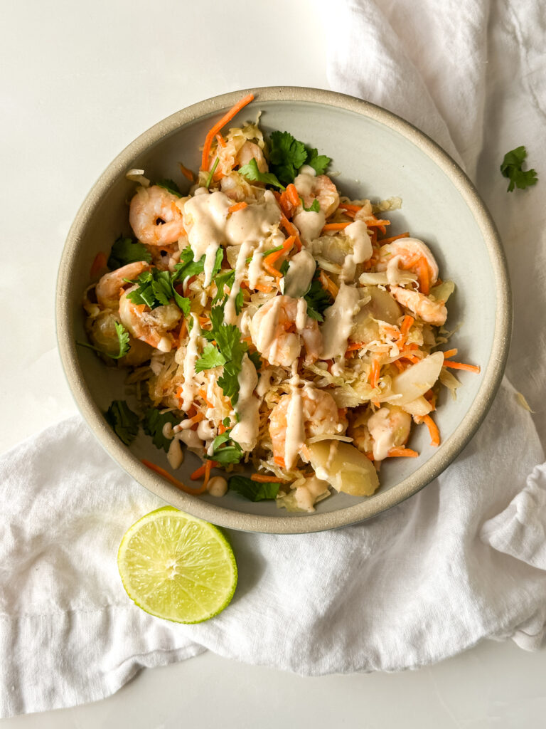 This shrimp egg roll in a bowl recipe is the perfect weeknight dinner.